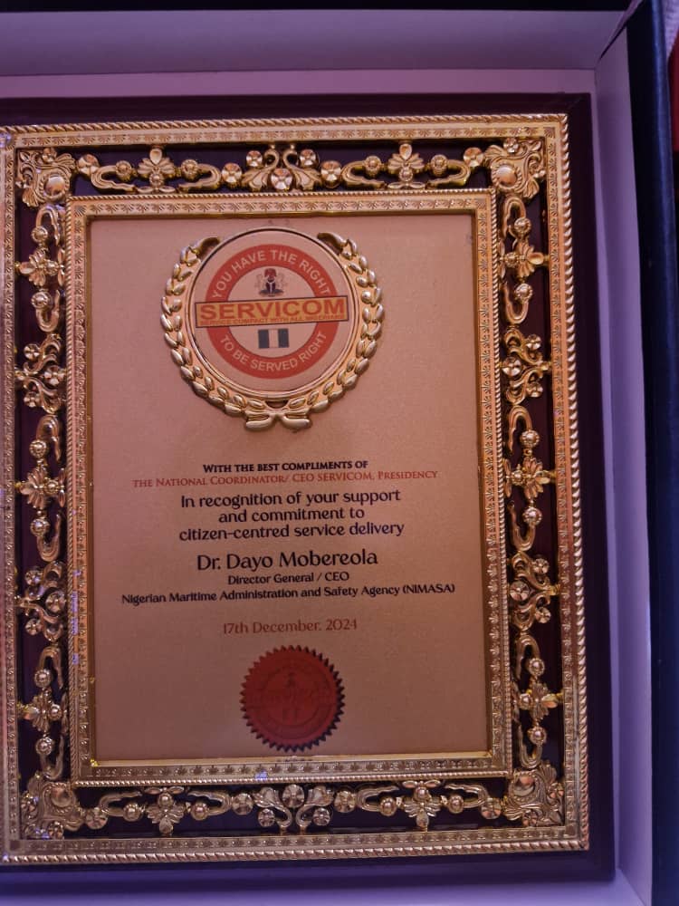 The SERVICOM Award, typically given to government agencies that demonstrate outstanding public service, acknowledges NIMASA’s strides in providing quality services to the maritime industry, including the facilitation of maritime safety, regulation, and the promotion of Nigeria’s maritime sector.