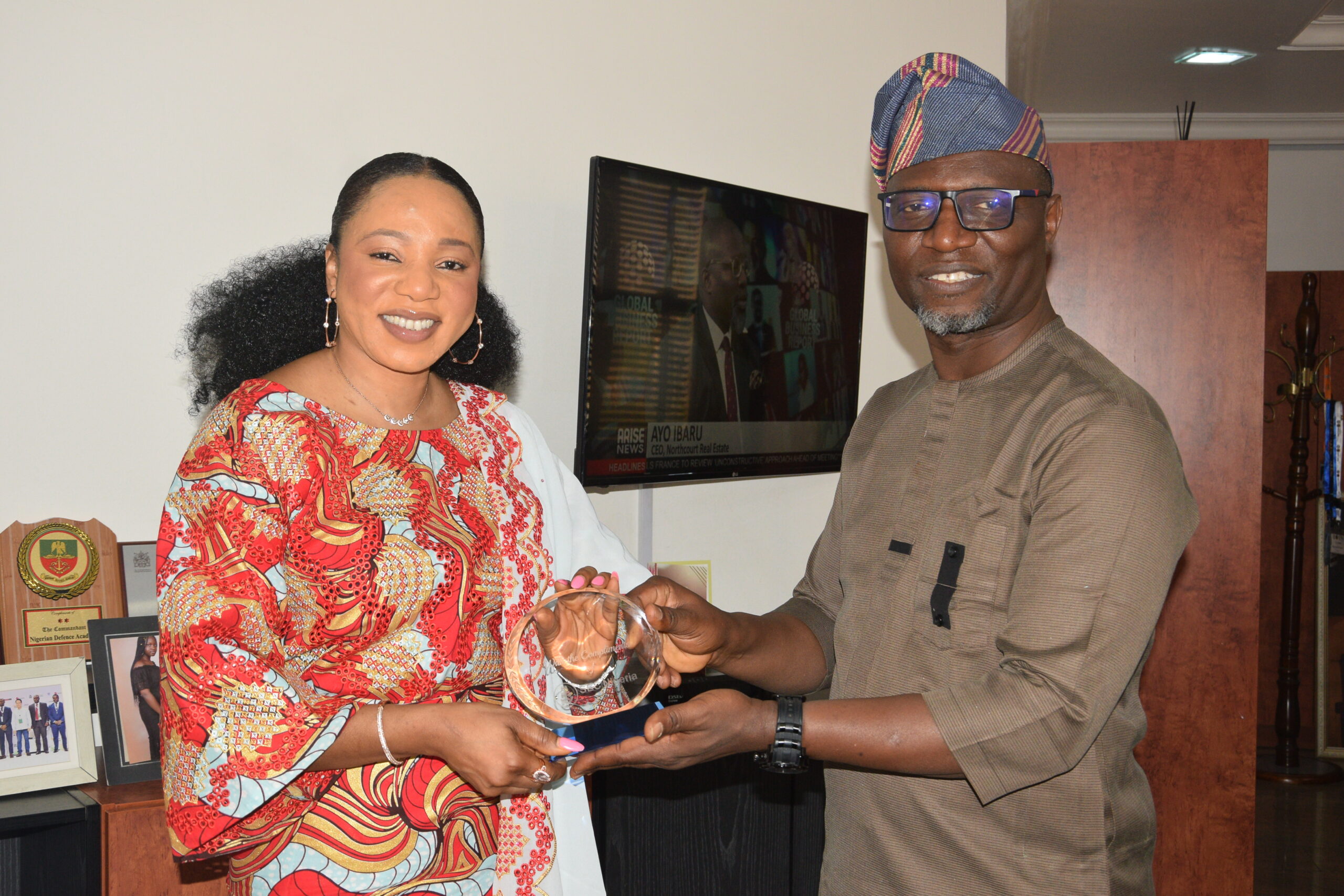 L-R: Lord Mayor of Leeds, United Kingdom, Councillor Abigail Marshall Katung, with Director General, Securities and Exchange Commission(SEC), Dr. Emomotimi Agama, during a courtesy visit to SEC headquarters in Abuja on Wednesday.