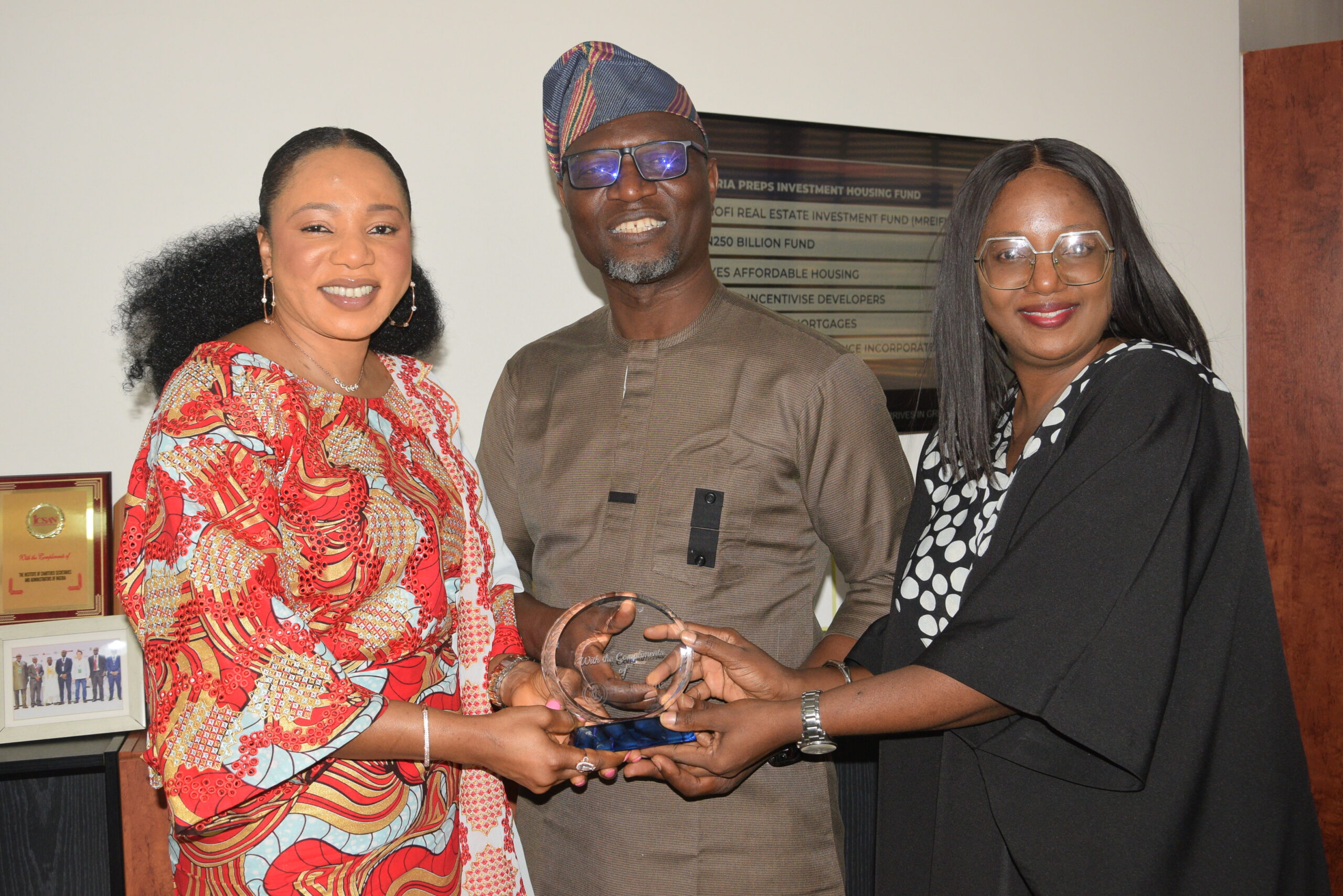 L-R: Director General, Securities and Exchange Commission(SEC), Dr. Emomotimi Agama, Lord Mayor of Leeds, United Kingdom Councillor Abigail Marshall Katung and Divisional Head, Financial Inclusion and Investor Education, Market Development Dept, SEC, Mrs Jessie Ogwuche, during a courtesy visit to SEC headquarters in Abuja on Wednesday.