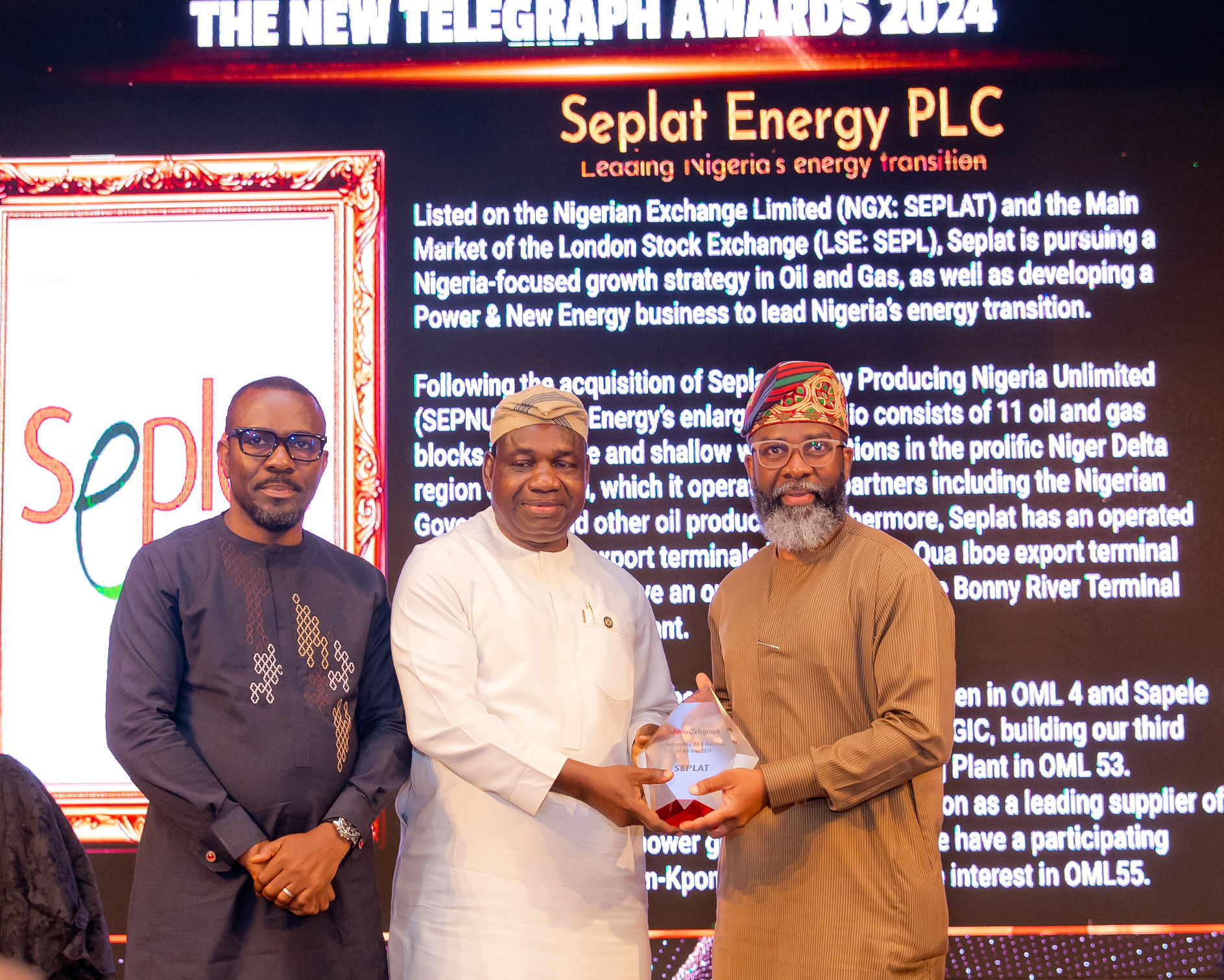 Seplat Energy Plc, a leading Nigerian energy company listed on both the Nigerian Exchange Limited and the London Stock Exchange, has been honored with the prestigious ‘Deal of the Year’ Award at the New Telegraph Newspaper Awards. The recognition follows the company’s successful acquisition of Mobil Producing Nigeria Unlimited (MPNU) from ExxonMobil, finalized in December 2024, a transaction that has redefined the Nigerian energy landscape.