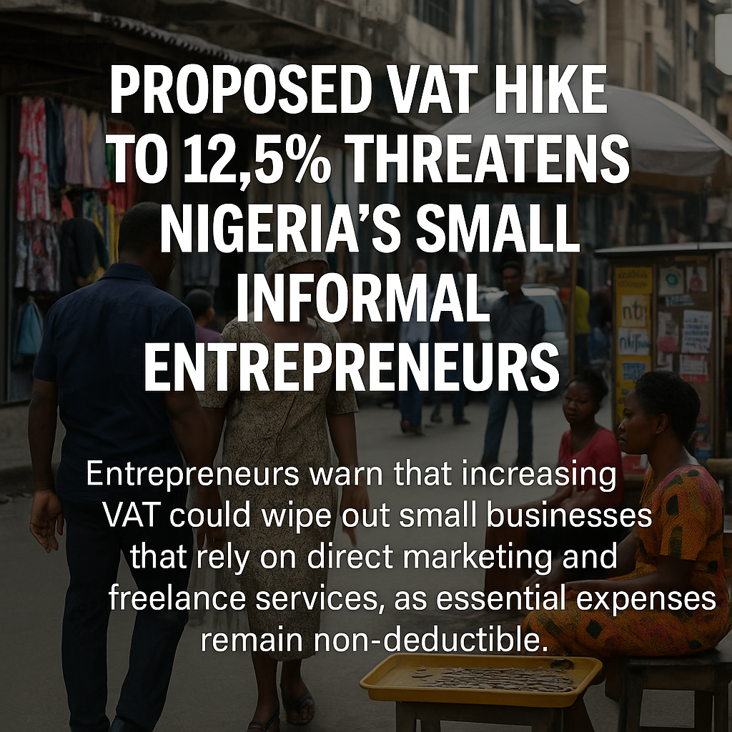 The federal government’s proposed increase in the Value Added Tax (VAT) from 7.5% to 12.5% has sparked widespread concern among Nigeria’s small and informal entrepreneurs, who say the hike could cripple their businesses and push many out of operation.