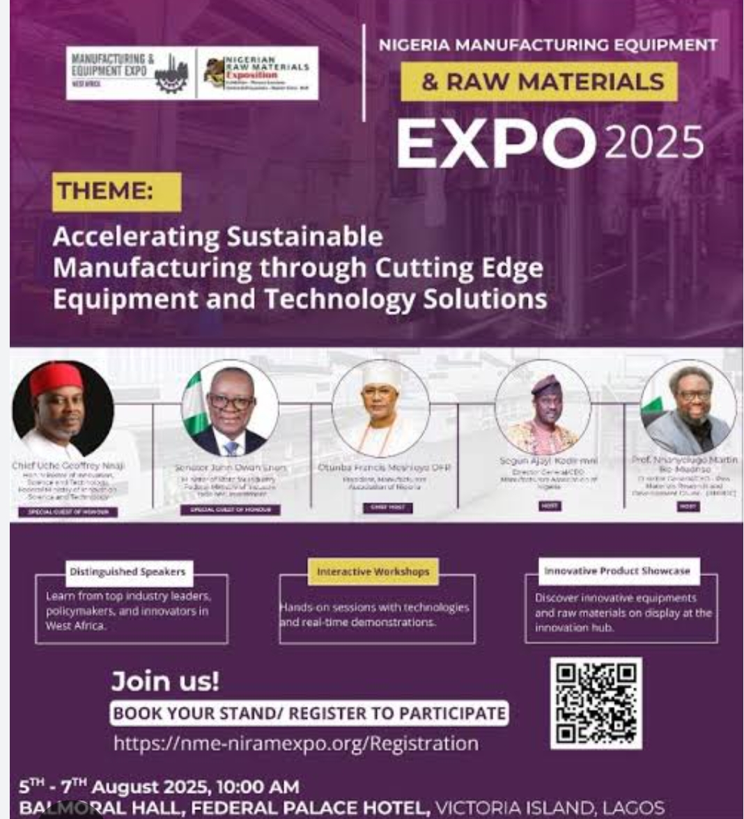 In a passionate and reflective moment for Nigeria’s manufacturing community, Otunba Francis Meshioye, OFR, President of the Manufacturers Association of Nigeria (MAN), stepped up once again to champion a bold vision for the country’s industrial future. At the association’s headquarters on Obafemi Awolowo Way, Ikeja, Lagos, he addressed a room filled with journalists, captains of industry, and stakeholders during the pre-event press conference for the 2025 Nigeria Manufacturing and Equipment Expo (NME) and the Nigerian Raw Materials Expo (NIRAM).