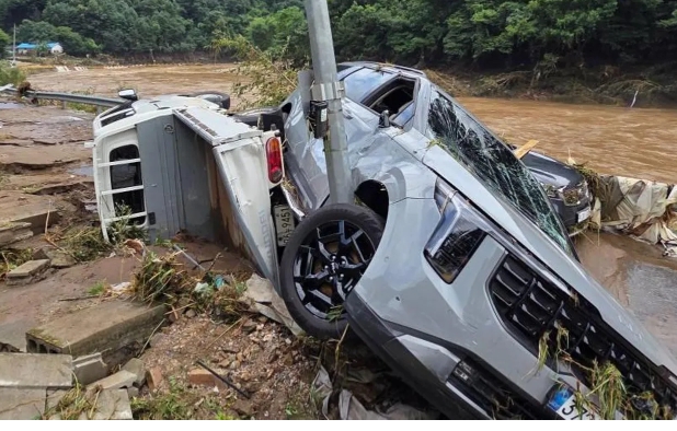 Gapyeong province saw some of the most dramatic moments, where strong floodwaters swept vehicles into rivers and tore up roads. Video footage shared widely online shows residents clinging to rooftops, waiting desperately for rescue teams to arrive.