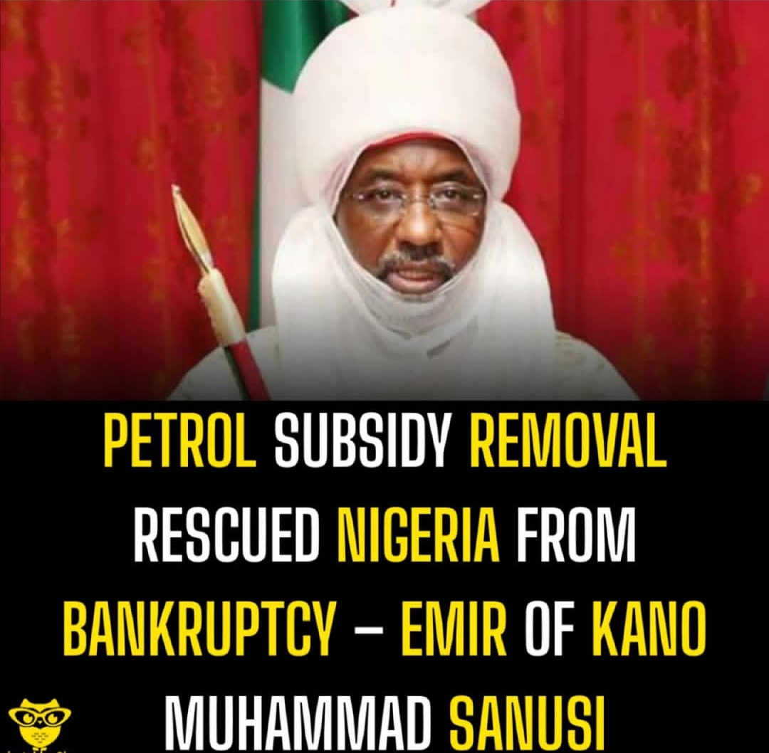 Emir of Kano, Muhammad Sanusi II, says removing petrol subsidy saved Nigeria from imminent bankruptcy. He faults past governments for enriching foreign refineries and urges Nigerians to view subsidy removal as a path to rebuilding the economy.