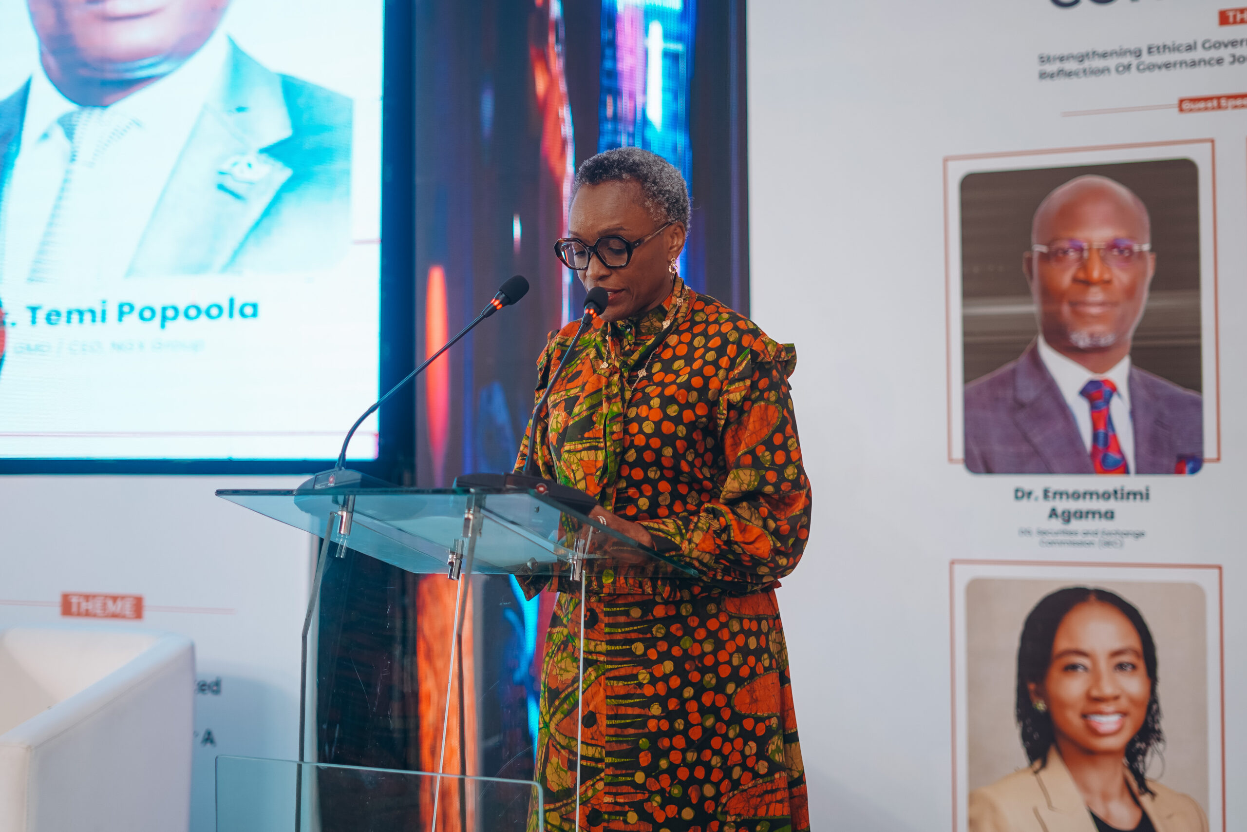 “Strengthening Ethical Governance in a Disrupted World: Reflections of Governance Journey for a Sustainable Future,” featuring distinguished speakers including the Chairman of the Presidential Committee on Fiscal Policy and Tax Reforms, Taiwo Oyedele; Director, Nigeria Credit Guarantee Company (NCGC), Yeside Kazeem; Chairperson, Coronation Life Assurance Limited, Susanne Iroche; and CEO, LeadRight Consultant, South Africa, Kim Andersen.