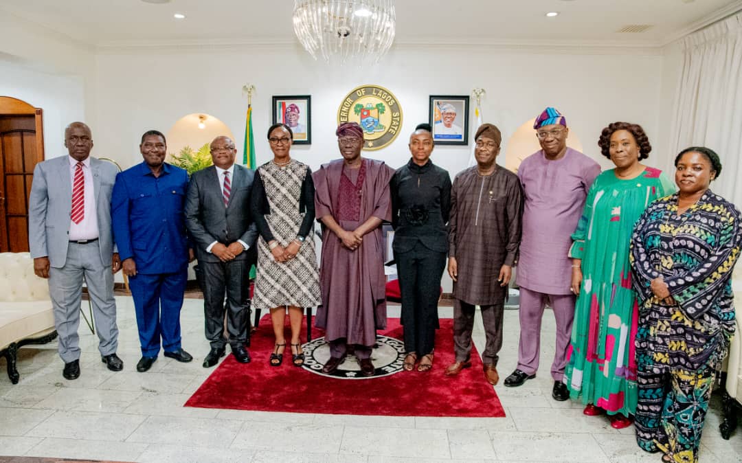 L-R: Mr. Babatunde Onigbanjo, Permanent Secretary, Lagos State Ministry of Commerce, Cooperatives, Trade and Investment; Dr. Rotimi Fashola, Special Adviser to the Governor on Agriculture and Food Systems; Dr. Wole Odubayo, Human Resource Director, Cadbury Nigeria Plc; Mrs. Oyeyimika Adeboye, Managing Director, Cadbury Nigeria; His Excellency, Mr. Babajide Sanwo-Olu, Governor of Lagos State; Mrs. Morolake Emopkaire, Marketing Lead, Cadbury Nigeria; Dr. Obafemi Hamzat, Deputy Governor, Lagos State; Mr. Sam Egube, Deputy Chief of Staff to Lagos State Governor; Mrs. Folashade Bada Medebem, Hon. Commissioner, Lagos State Ministry of Commerce, Cooperatives, Trade and Investment; with Ms. Abisola Olusanya, Hon. Commissioner, Agriculture and Food Systems, Lagos State, during a courtesy visit by the leadership team of the company to State House, Marina, Lagos, recently, as part of its 60th anniversary celebrations.