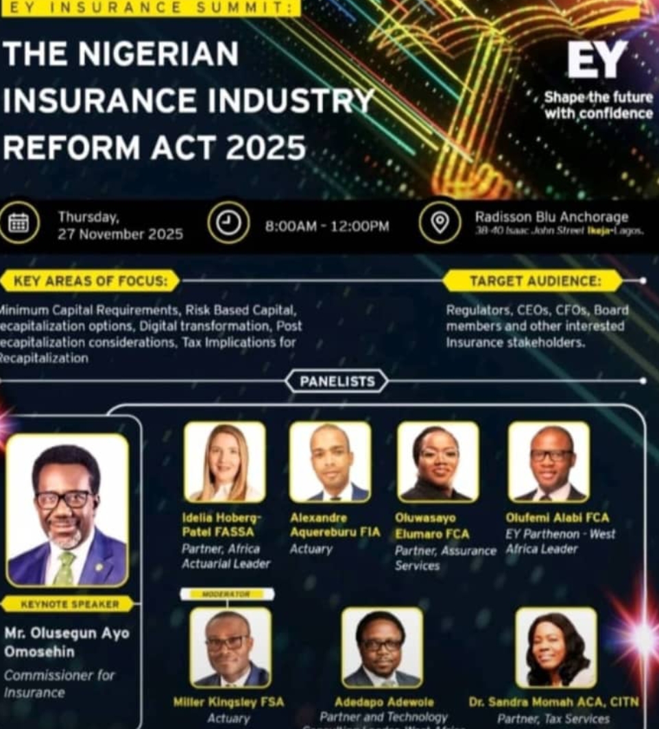 Speaking through Dr. Usman Jankara, Deputy Commissioner for Insurance, at the EY Insurance Summit on NIIRA 2025 held on November 27, 2025, at the Radisson Blu Anchorage, Lagos, Omosehin said the reform Act signals a decisive shift in the regulatory landscape as Nigeria works toward achieving a $1 trillion GDP target by 2030.