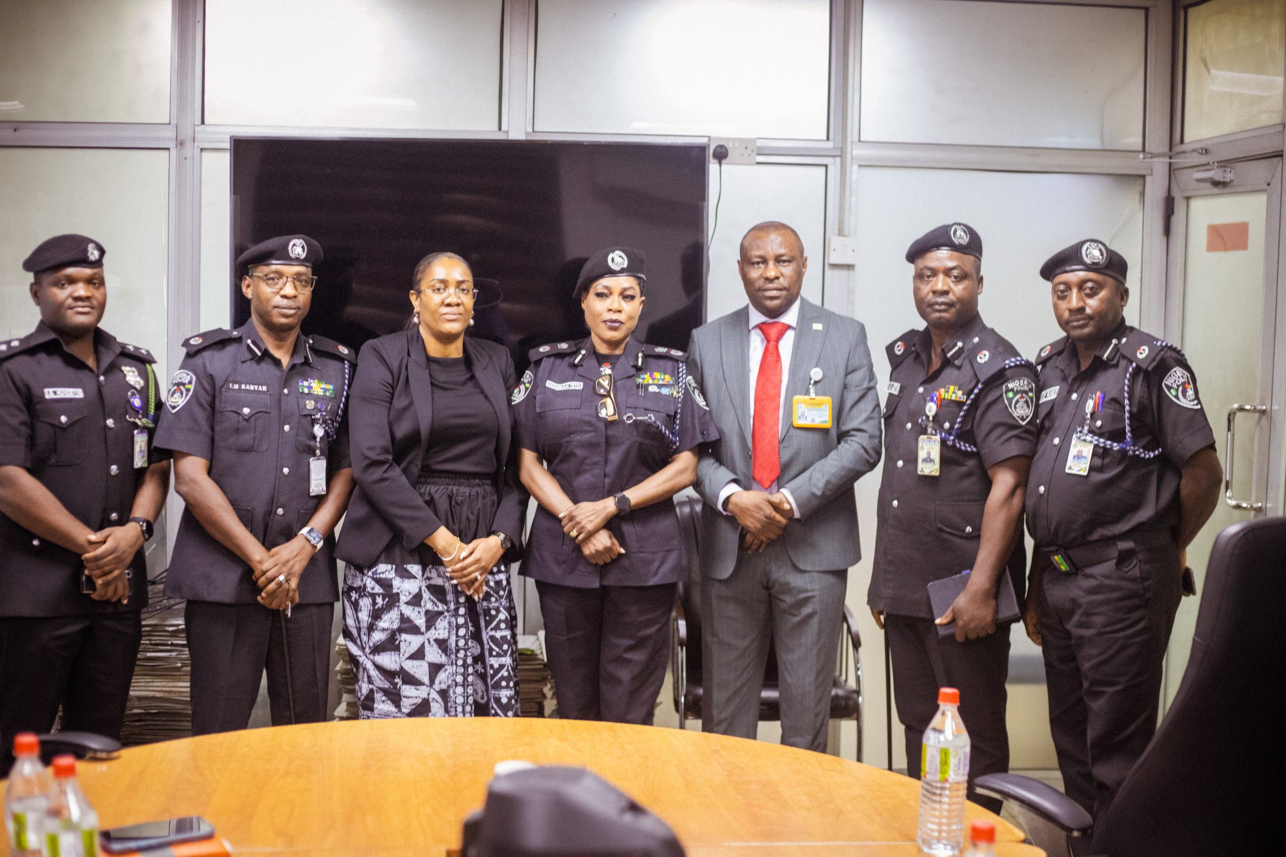 L-R: The Nigerian Police Public Relations Officer (PPRO), Ports Authority Western Command, ASP Isaac Hundeyin; Assistant Commissioner of Police Operations, ACP Inusa Karyah; Group Coordinating Director, SIFAX Group, Wunmi Eniola-Jegede; Commissioner of Police, Ports Authority Police Western Command, Oluwatoyin Agbaminoja; Deputy Director, Strategy and Operations, SIFAX Group, Oliver Omajuwa; and the Assistant Commissioner of Police, (Administration), ACP Olufikayo Fawole during the commissioner’s courtesy visit to the Sioux Group’s corporate head office.