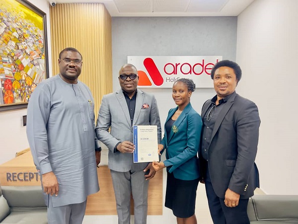 The ISO 45001:2018 certificate was officially presented to Aradel Holdings Plc on February 19, 2026, at its Lagos head office by CoreQuality CB Ltd.