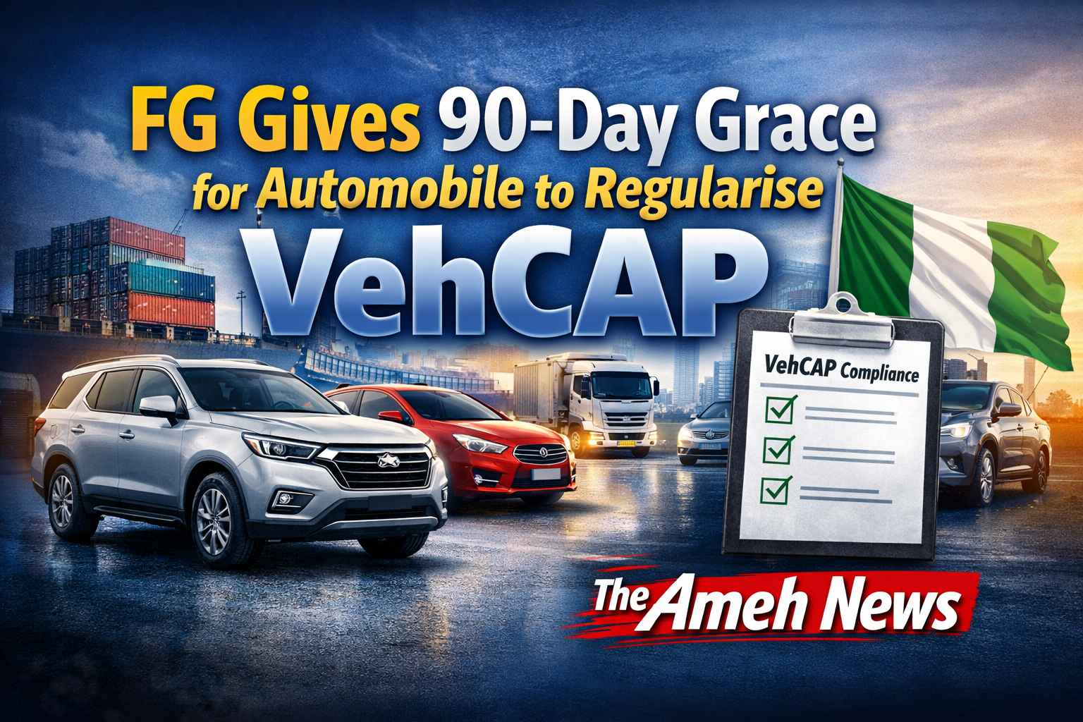 The Federal Government of Nigeria, through the Standards Organisation of Nigeria (SON) and the National Automotive Design and Development Council (NADDC), has announced a 90-day grace period for automobile importers to regularise their vehicles under the Vehicle Conformity Assessment Programme (VehCAP).