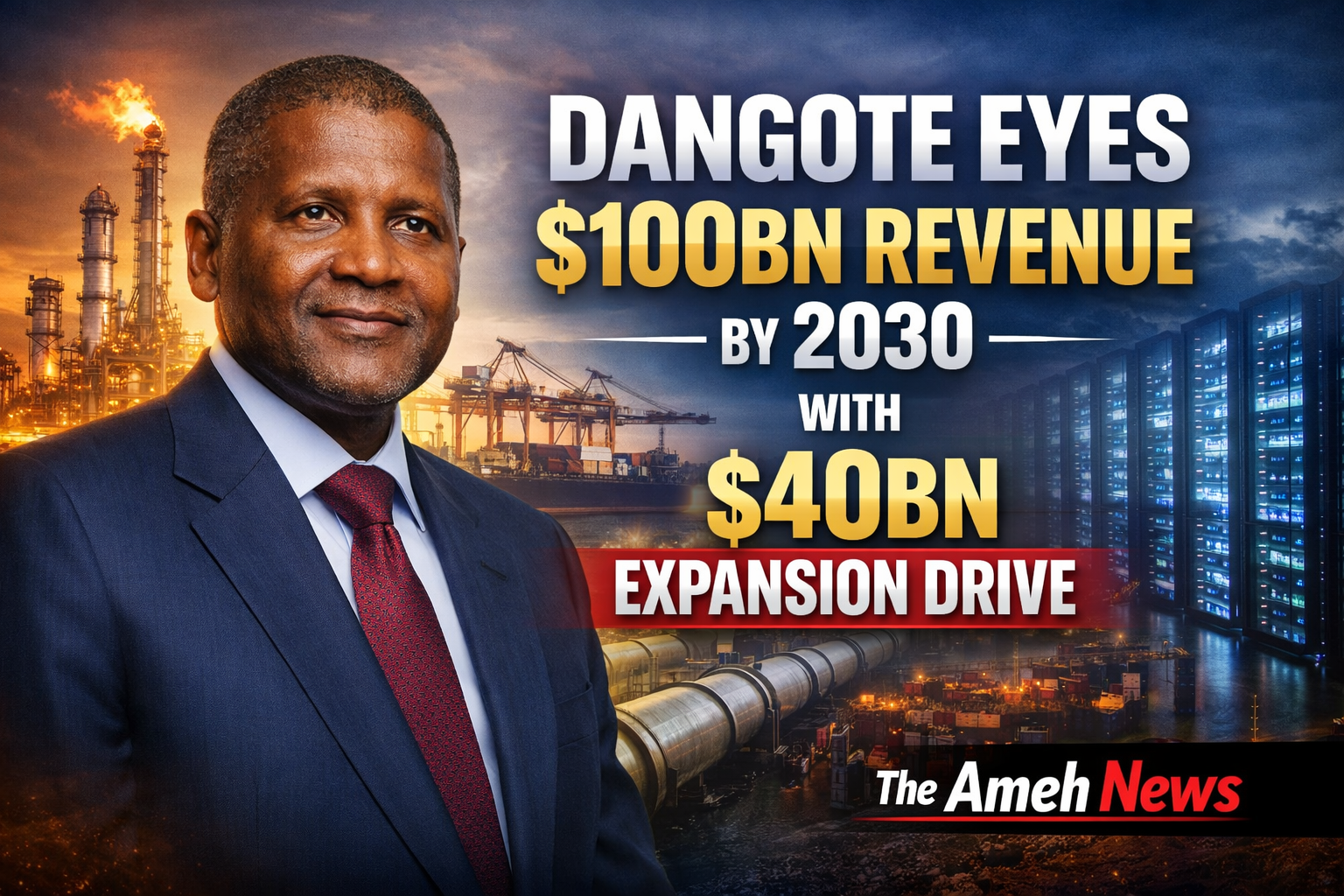 Dangote Group unveils a $40bn investment plan targeting $100bn revenue by 2030, with major expansions in refinery capacity, fertiliser production, infrastructure, and data centres across Africa.